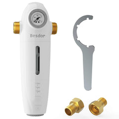 1. Pre-filter(Spindown Sediment). The first level of water treatment in the whole house is to filter out large particle pollutants such as rust, sediment, and suspended solids.