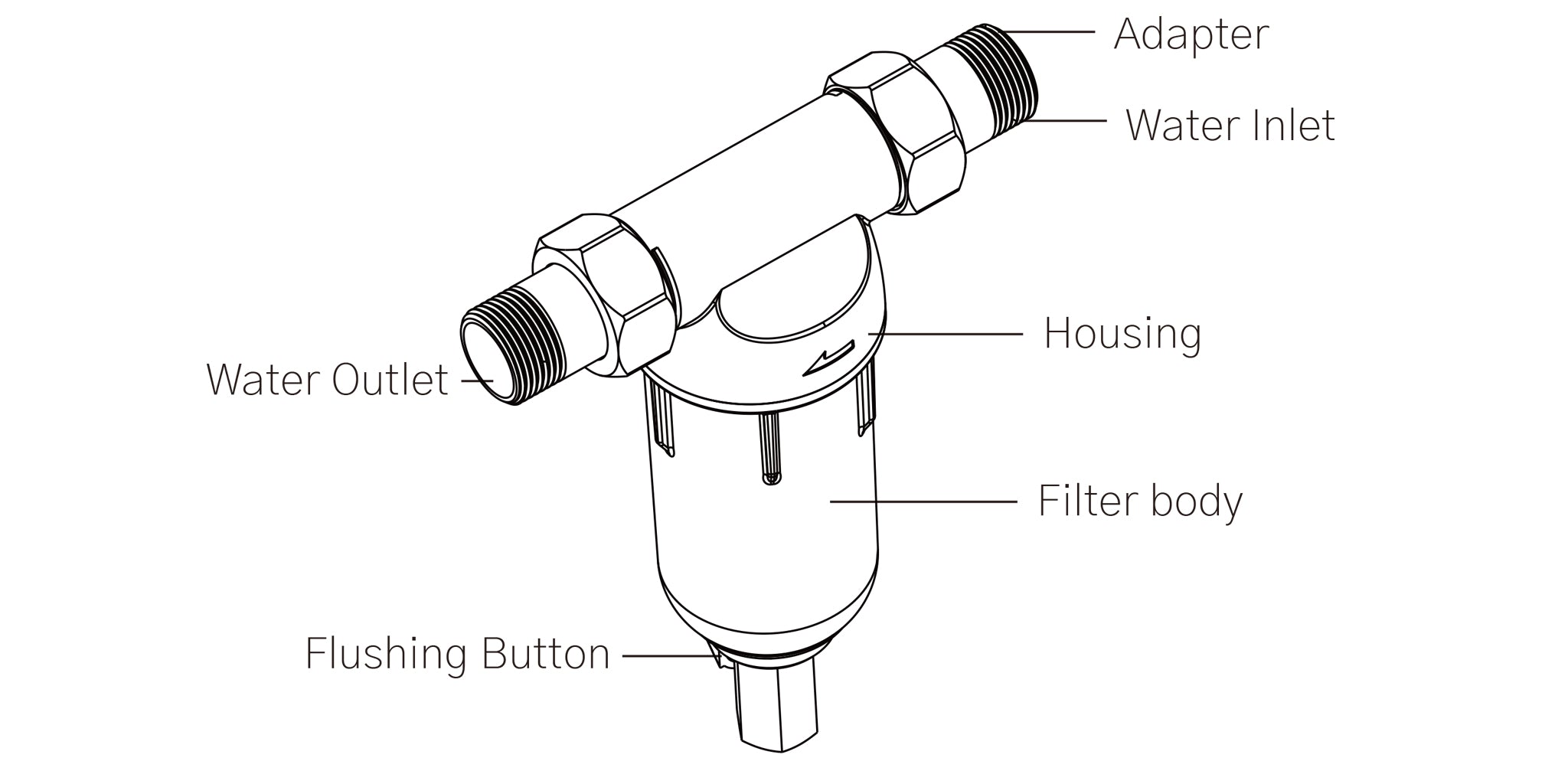 The Spin-down Sediment Filtration Systemfilters municipal tap water or well water through a stainless-steel filter mesh, which can filter out sediment, rust, suspended solids, and parasites in the water. The system can be manual washed. It effectively protects appliances such as water purifiers, water heaters, wall-hung boilers, washing machines, dishwashers, and solar showers.