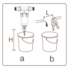 1. First determine the installation position according to the product size (reserve a height of H≥300mm for sewage discharge) as shown in Figure 1(a), close the water inlet valve, open the outlet of the household faucet, and then use PPR scissors to cut a length of 151mm at the installation position, to install this product as shown in Figure 1(b). Pay attention to the remain water in the pipe with a container.