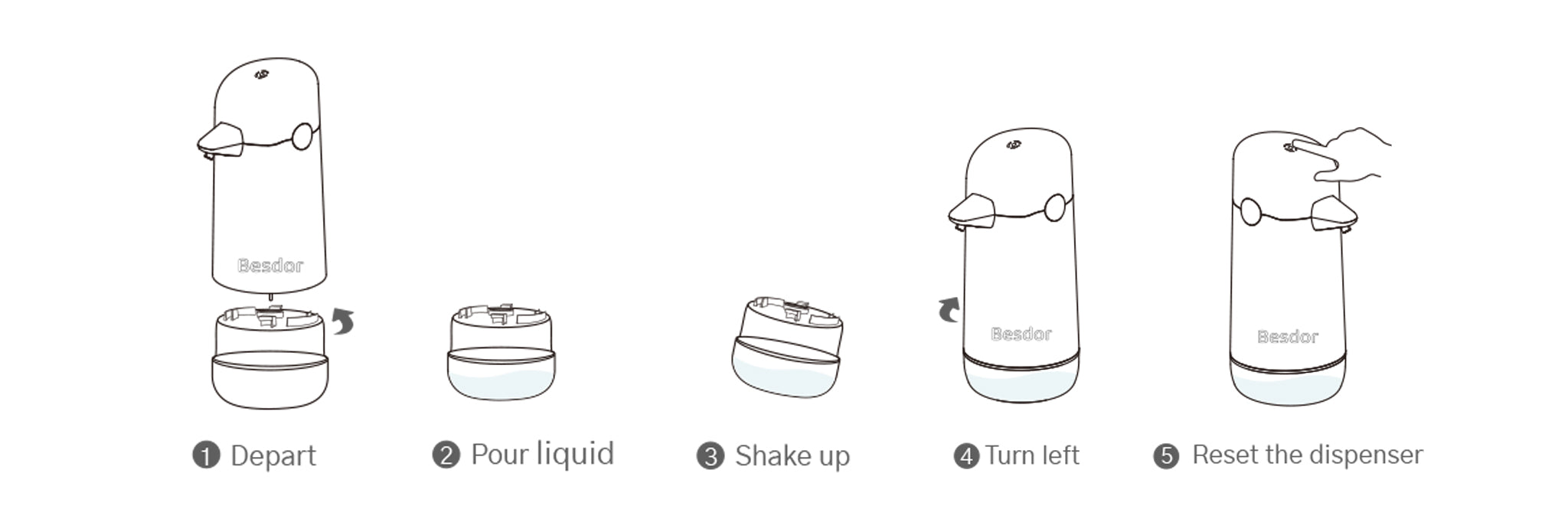 The Besdor Intelligent Sensor Automatic Foaming Soap Dispenser provides a 1-year warranty from the original date of purchase. If something goes wrong within 1 year from the date of purchase, please contact email: support@besdor.com, we ll try our best to help you. During the warranty period, we will replace or repair any part that is deemed to be defective if the product has not been altered, repaired and used improperly. The product is not warranted against misuse, including use in conditions listed outside the operating parameters. Solid or granular cleaning product cannot be used for this product. We are not responsible for the cost of transportation and the damage in transit; claims for such damage should be presented to the carrier by the customer.If you have any questions or need any service regarding ourproduct, please contact our customer service email: support@besdor.com.